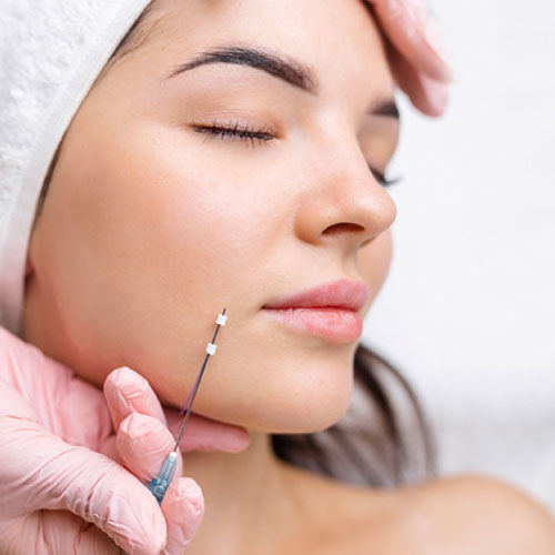 Os fios de PDO oferecem um efeito lifting imediato sem cirurgia, reposicionando os tecidos faciais e estimulando a produção de colagénio.